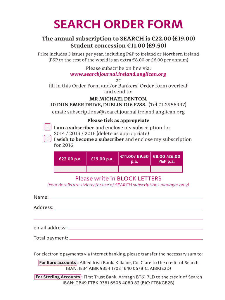 Get the free SEARCH ORDER FORM - Search Journal - searchjournal ireland anglican
