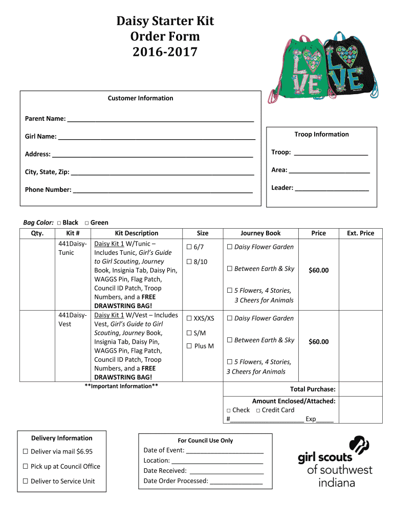 Get the free Daisy Starter Kit Order Form 2016-2017 - Girl Scouts of ... - girlscouts-gssi