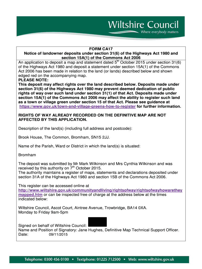 Get the free FORM CA17 Notice of landowner deposits under section 31(6 ... - php wiltshire gov