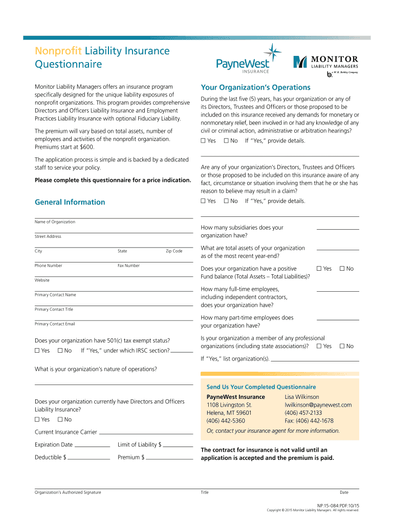 Get the free Nonprofit Liability Insurance - Monitor Liability Managers
