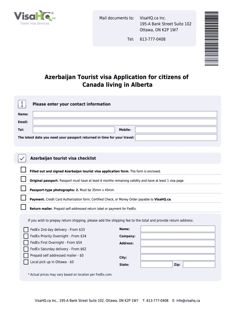 Get the free Azerbaijan Visa Application for Citizens of Canada. Azerbaijan Visa Application for ...