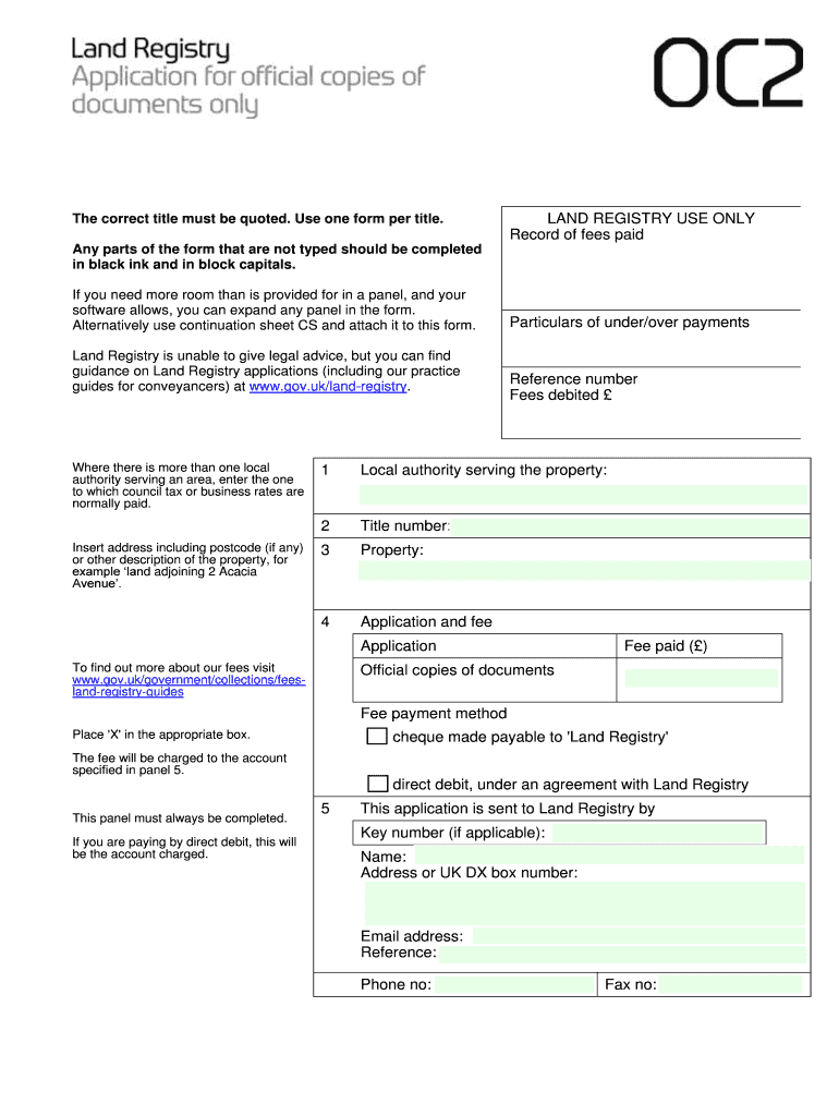 The correct title must be quoted. Use one form per title. LAND REGISTRY USE ONLY Any parts of the form that are not typed should be completed in black ink and in ...