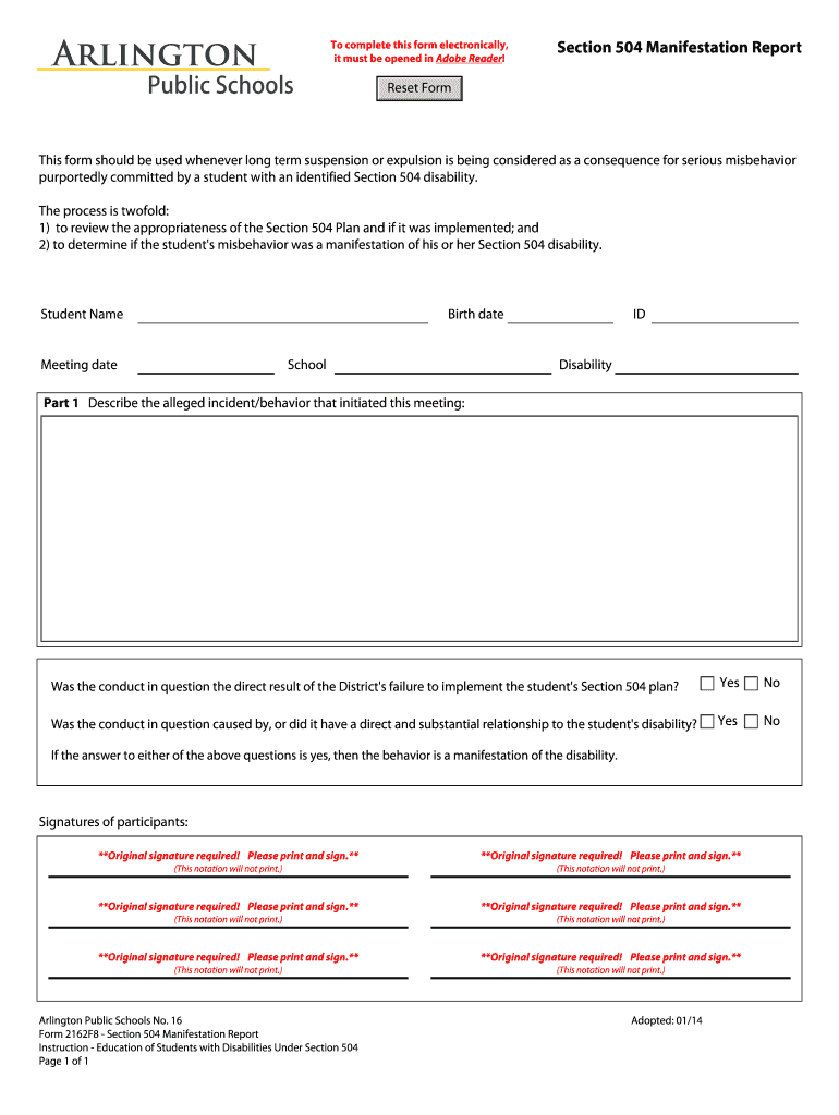 Get the free Section 504 Manifestation Report - Arlington Public Schools - asd wednet