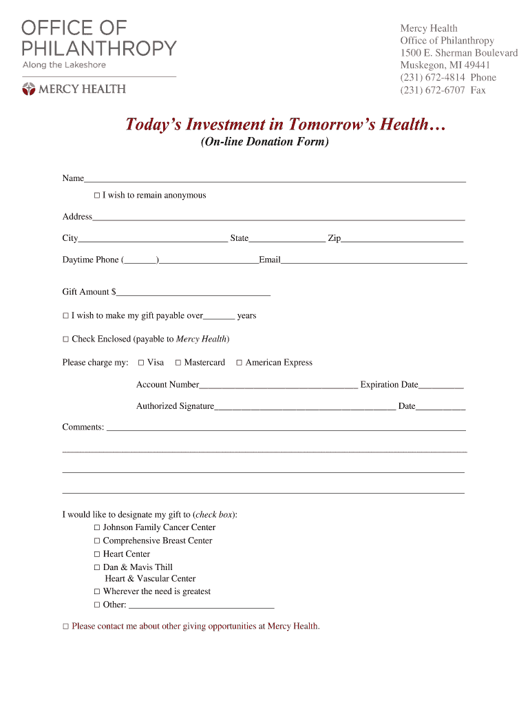 Get the free Donation Form - Mercy Health Muskegon