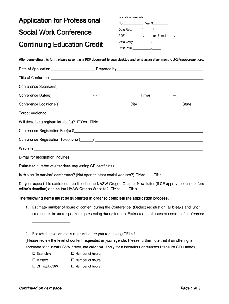 Thank you for your interest in obtaining continuing education credit for your conference/workshop from the Oregon Chapter, NASA. Please refer to the Program ...