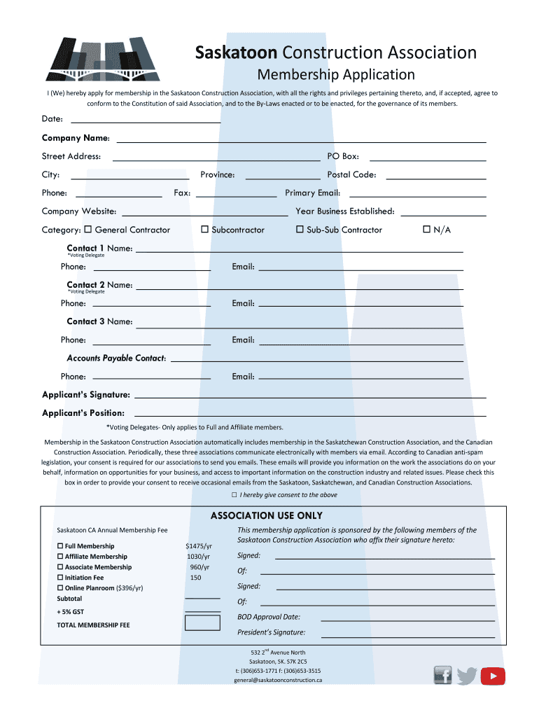 Review the membership options: The Saskatoon Construction Association typically offers different membership options, including general memberships, associate memberships, and student memberships. Review the options and select the one that best suits your needs and qualifications.