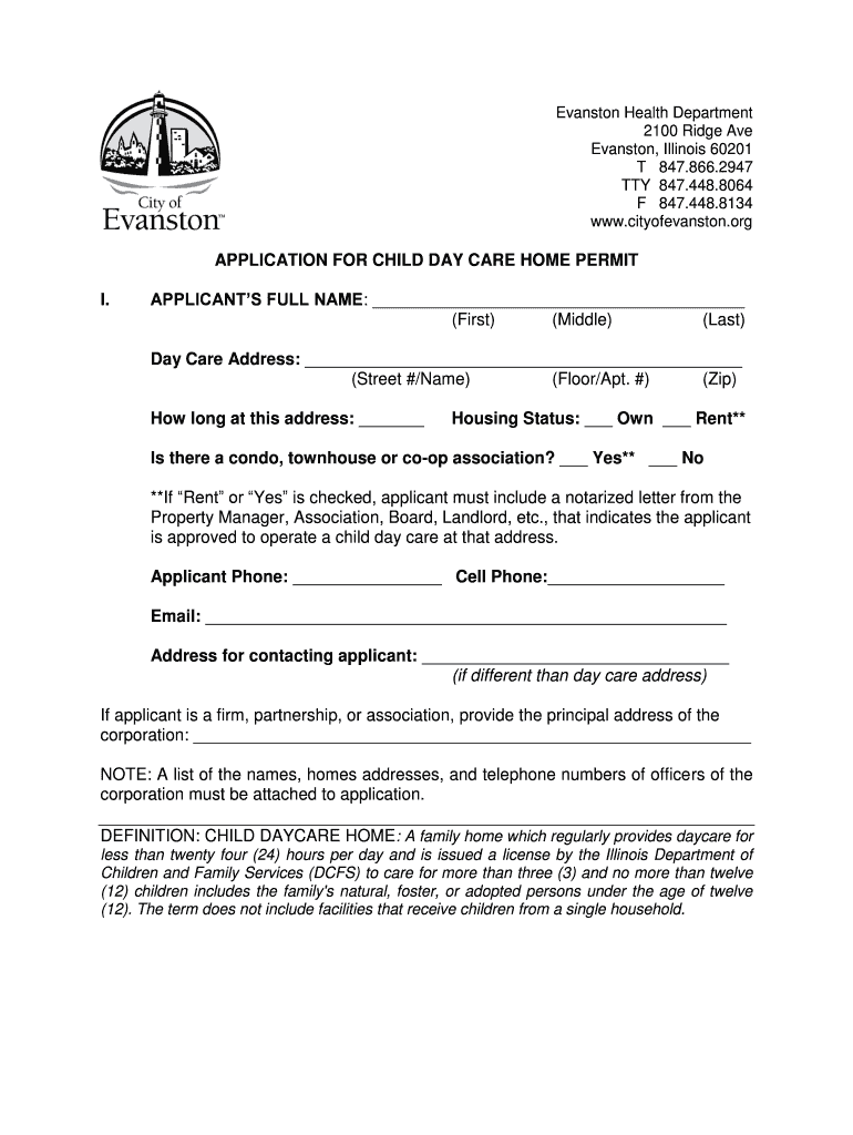 Get the free Child Home Day Care Permit Application - City of Evanston - cityofevanston