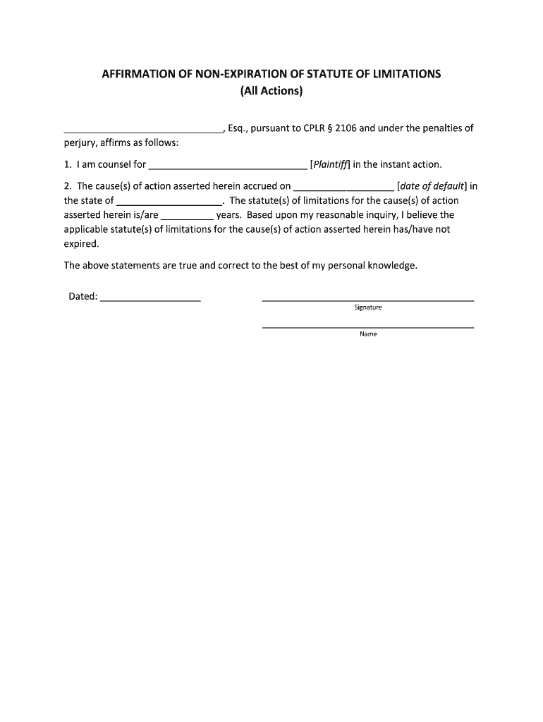 Get the free AFFIRMATION OF NON-EXPIRATION OF STATUTE OF LIMITATIONS - nycourts
