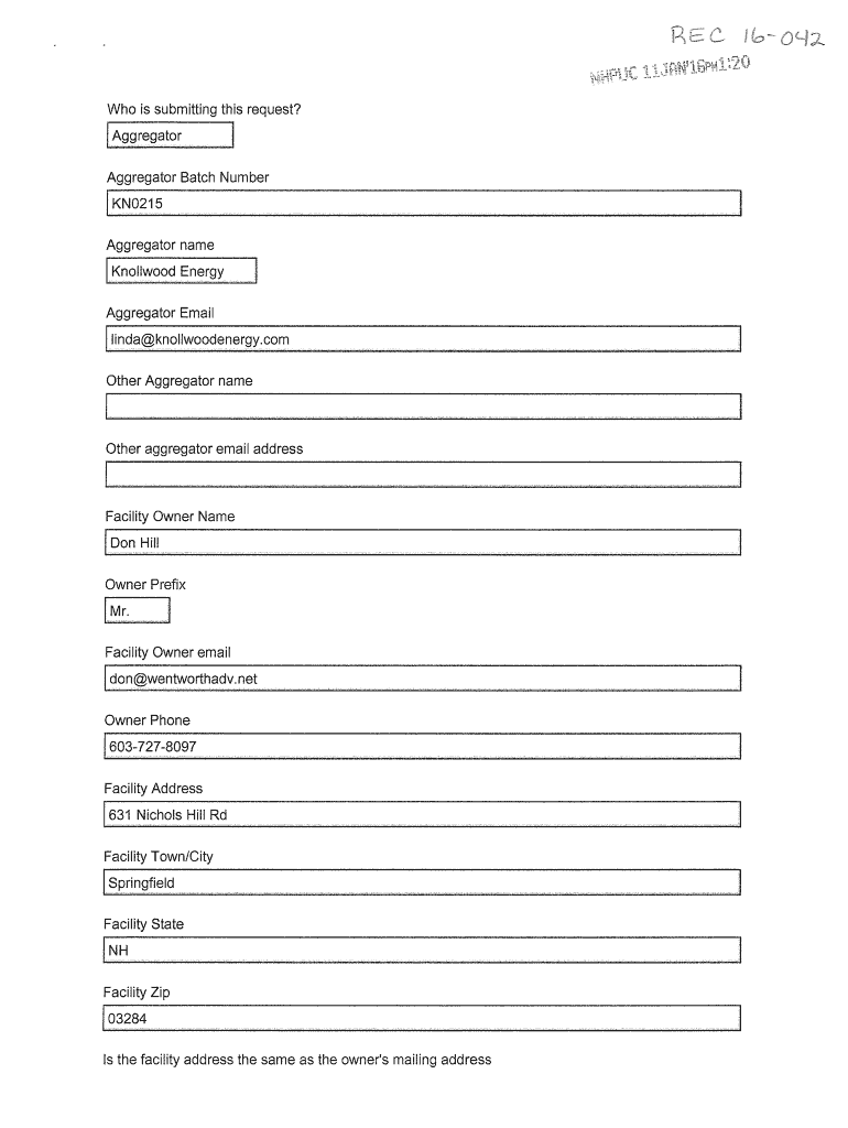 3 IPI Who is submitting this request? Aggregator Batch Number KN0215 Aggregator name Knoll wood Energy Aggregator Email I lindaknollwoodenergy.com I Other Aggregator name Other aggregator email address