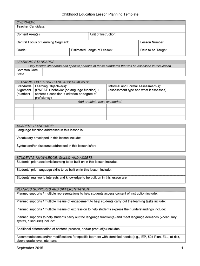 Edit your childhood education lesson planning form online