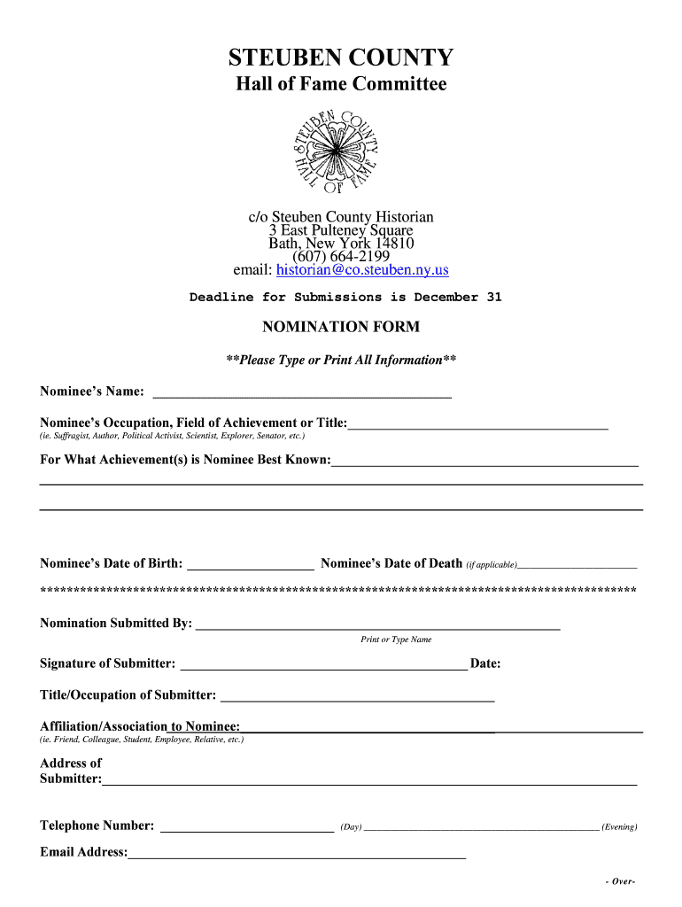 Get the free Nomination Form - Steuben County - steubencony