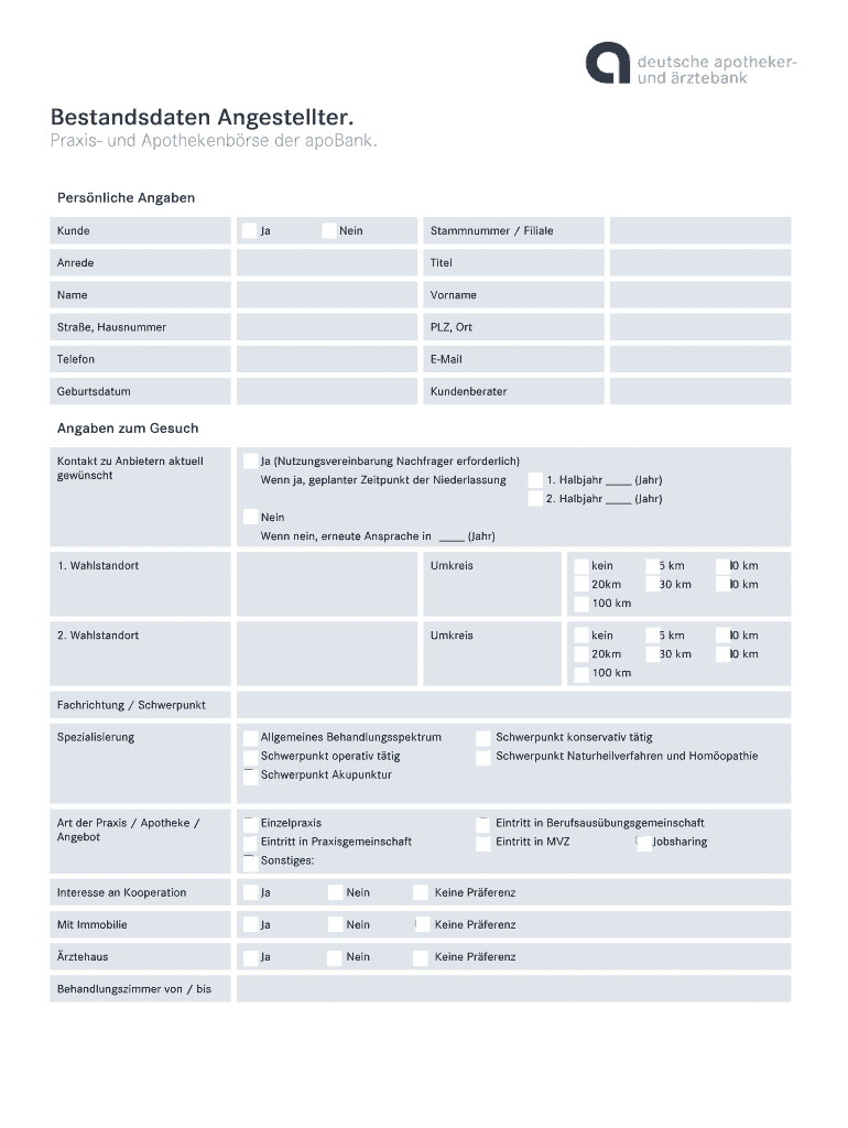 Bestandsdaten Angestellter. Praxis- UND Apothekenb RSE her Rabobank. Under JA Nan Stammnummer / Filial Agreed Title Name Surname Star e, Hausnummer PLY, ORT.