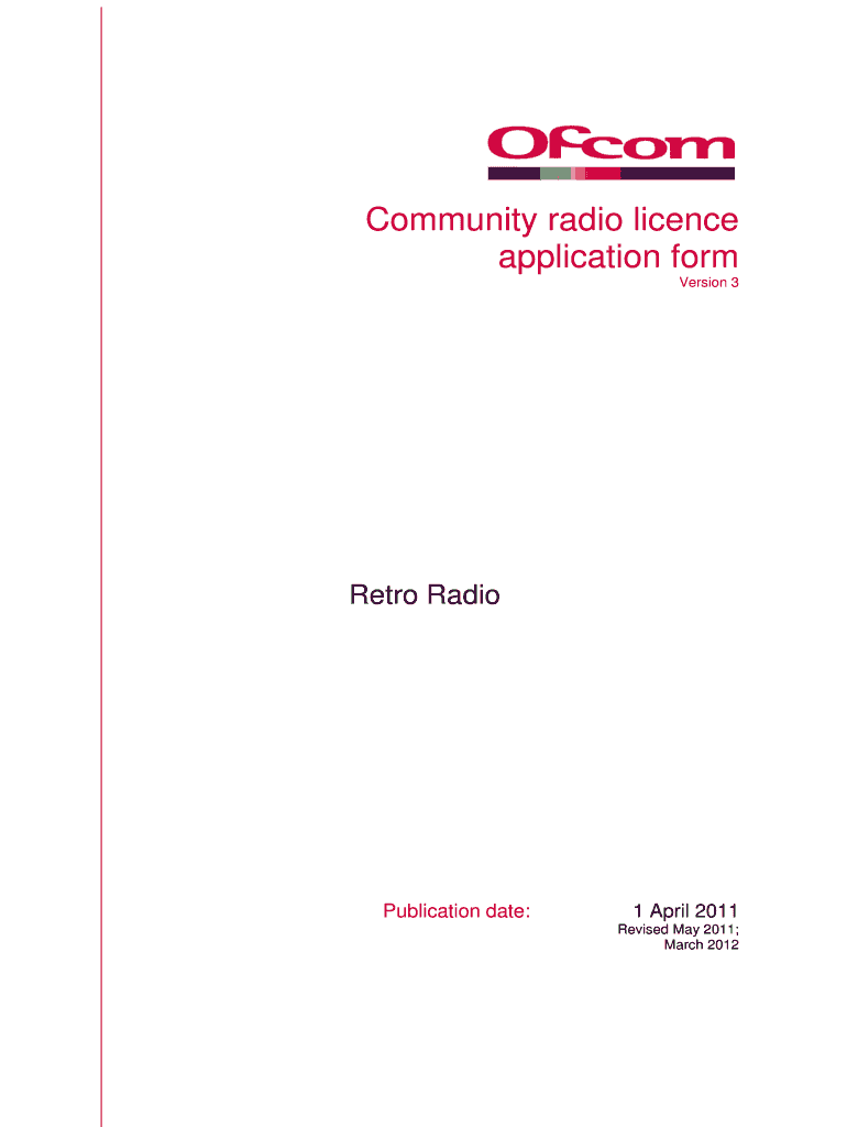 Get the free Retro Radio (Saddleworth) application form.docx - Ofcom Licensing - licensing ofcom org