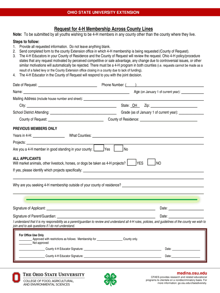 Get the free Note: To be submitted by all youths wishing to be 4-H members in any county other th...