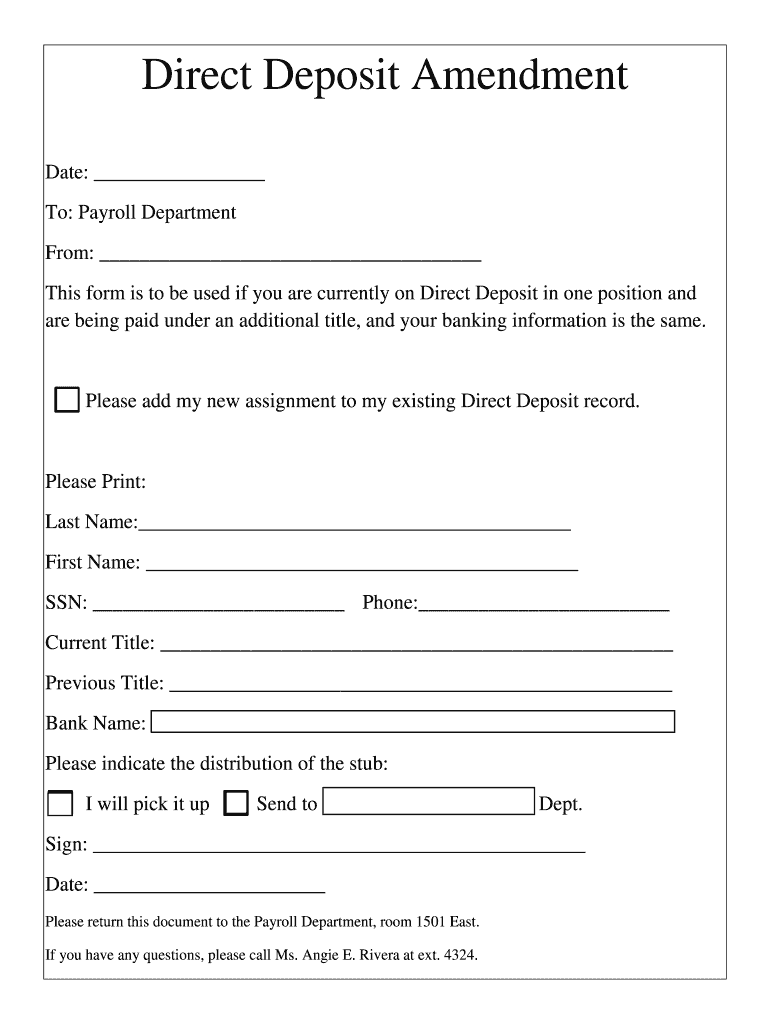 Direct Deposit Amendment Date: To: Payroll Department From: This form is to be used if you are currently on ...