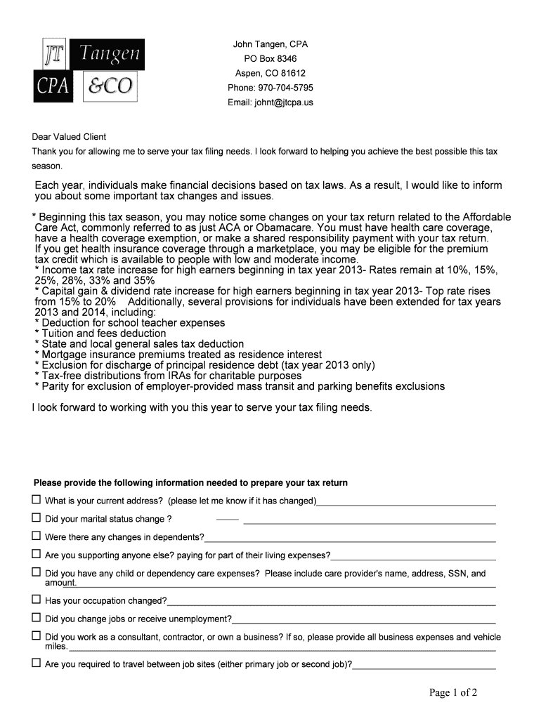 Get the free 2014 Personal tax return check list - jtcpa.us