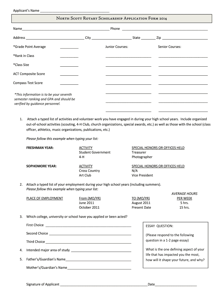 Get the free North Scott Rotary Scholarship Application -... - clubrunner