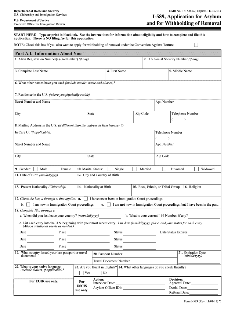 Get the free NOTE: Check this box if you also want to apply for withholding of removal under the ...