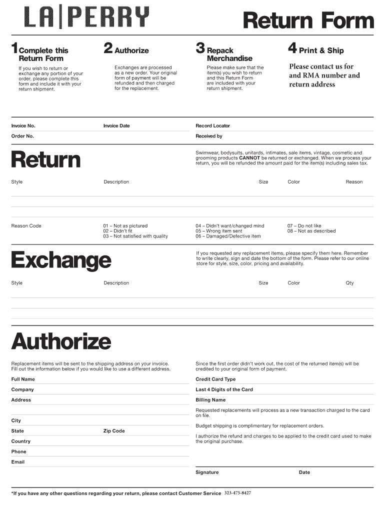 Get the free Return Form Return Exchange Authorize