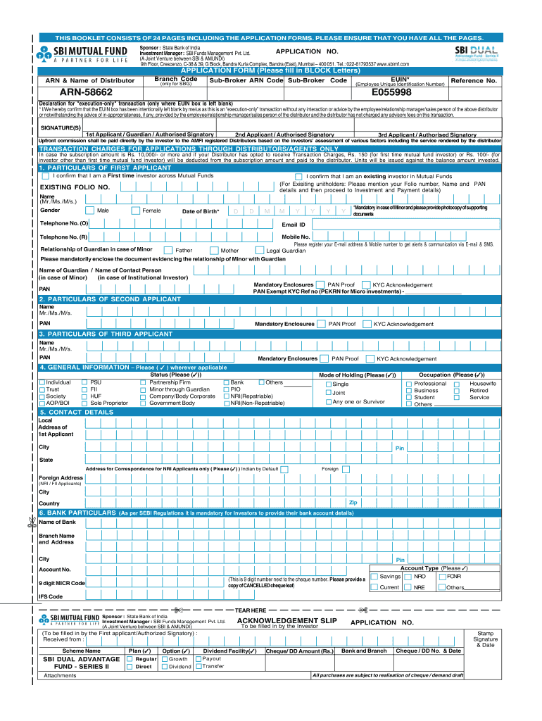 THIS BOOKLET CONSISTS OF 24 PAGES INCLUDING THE APPLICATION FORMS. PLEASE ENSURE THAT YOU HAVE ALL THE PAGES. Sponsor : State Bank of India APPLICATION NO. Investment Manager : SBI Funds Management