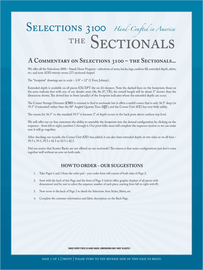 Get the free Selections 3100 Sectional Order Form