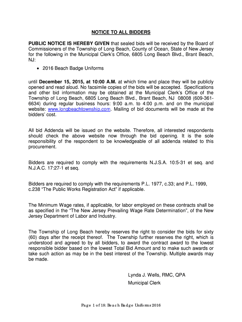 Edit your notice to all bidders form online
