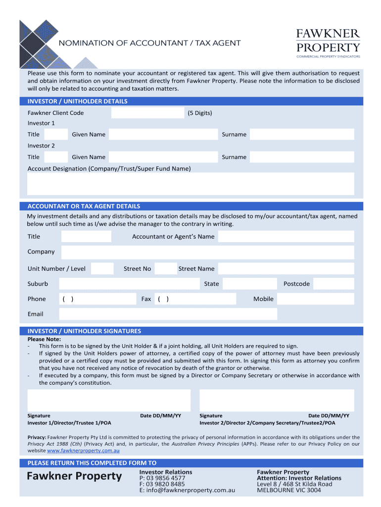 Get the free Nomination of Accountant or Tax Agent - Fawkner Property
