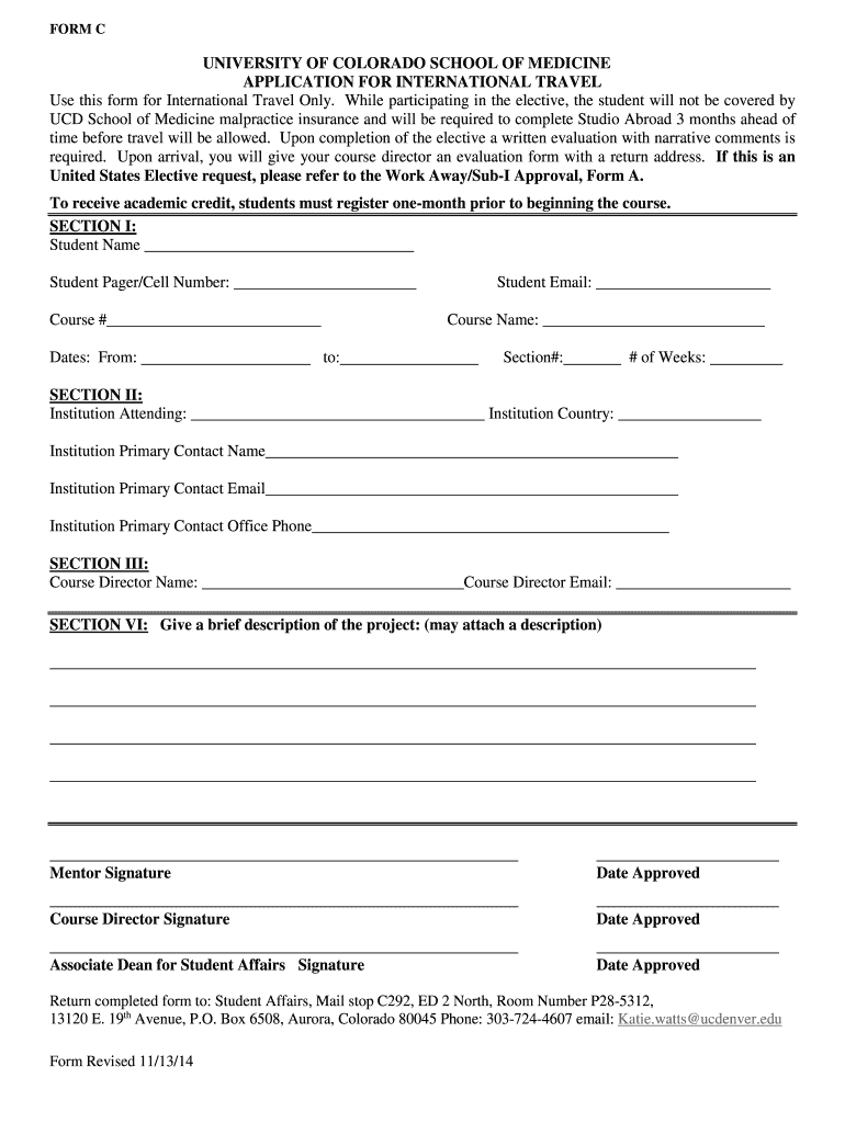 Get the free APPLICATION FOR INTERNATIONAL TRAVEL - ucdenver