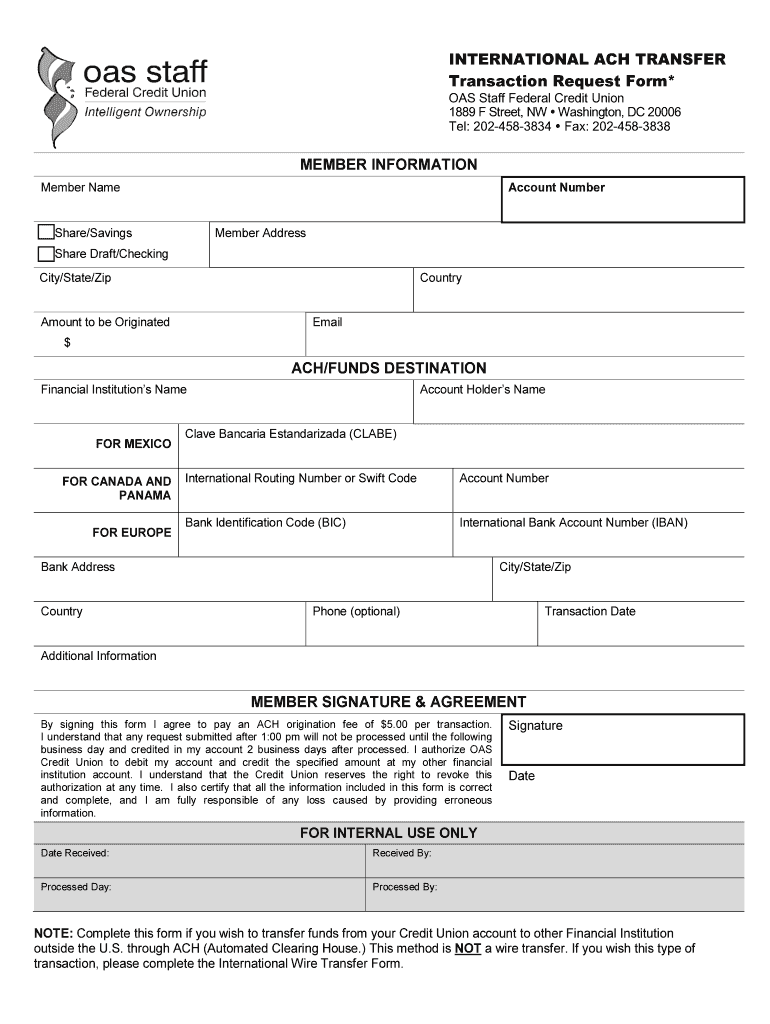 Get the free INTERNATIONAL ACH TRANSFER - oasfcu