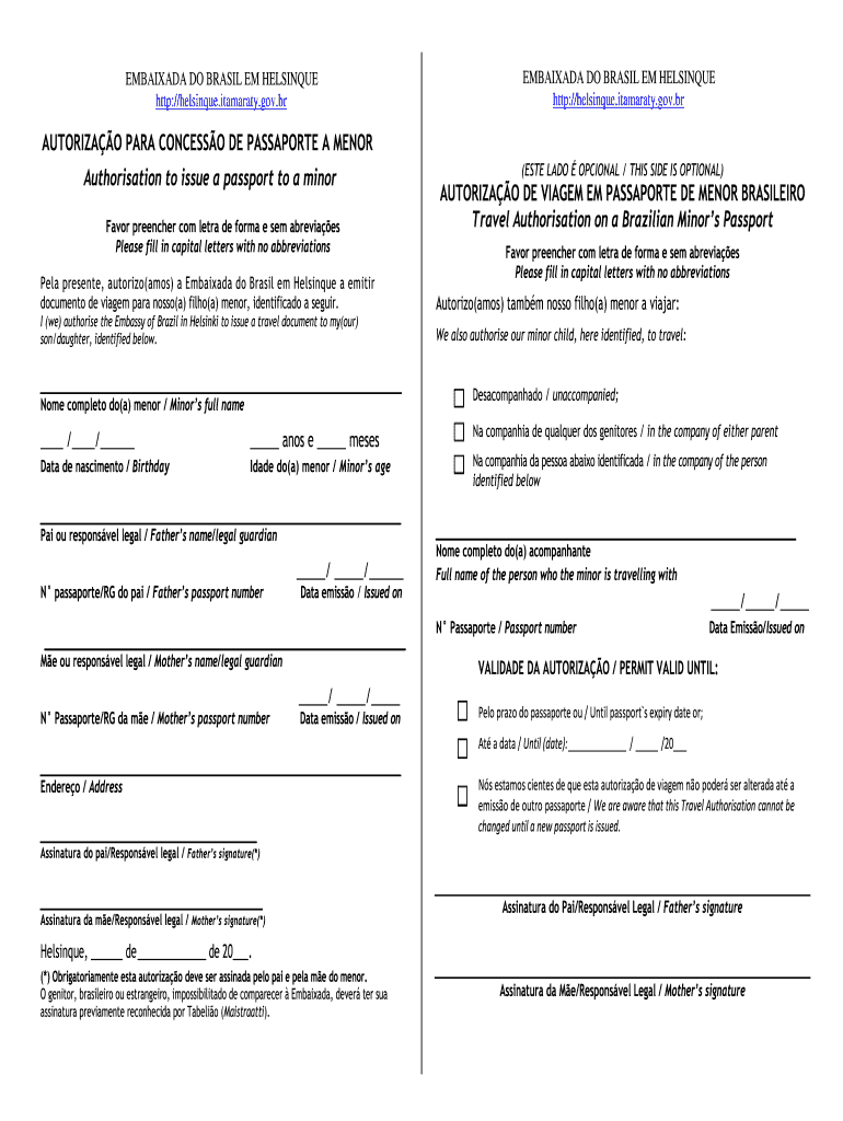 EMPANADA DO BRAZIL EM HELSINKI http://helsinque.itamaraty.gov.br EMPANADA DO BRAZIL EM HELSINKI http://helsinque.itamaraty.gov.br AUTHORIZED PARA CONCERTO DE PASSPORT A MINOR Authorization to issue