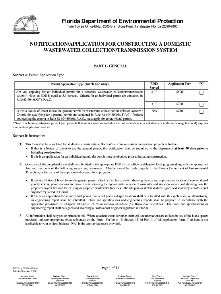 Florida Department of Environmental Protection ... This form shall be completed for all domestic wastewater ... City State Zip ...