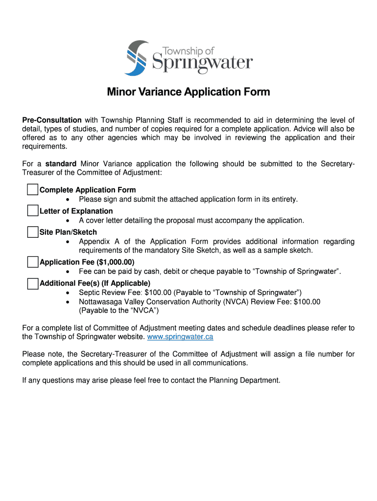 Get the free Minor Variance Application Form