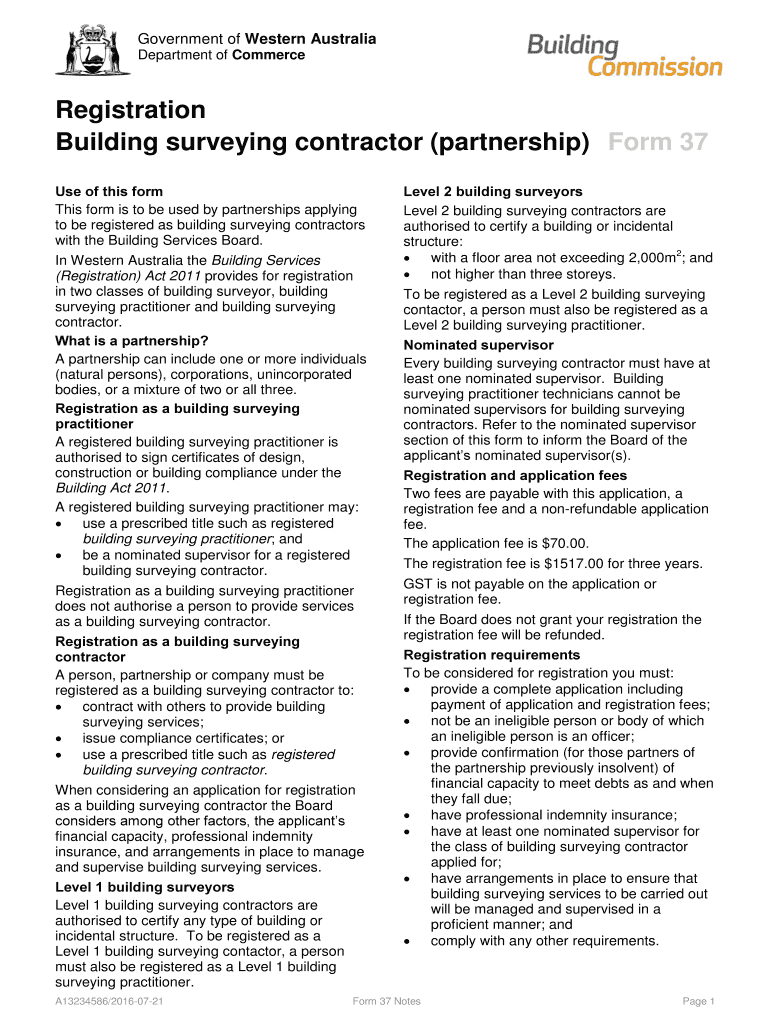 Get the free Building surveying contractor (partnership) Form 37 - commerce wa gov