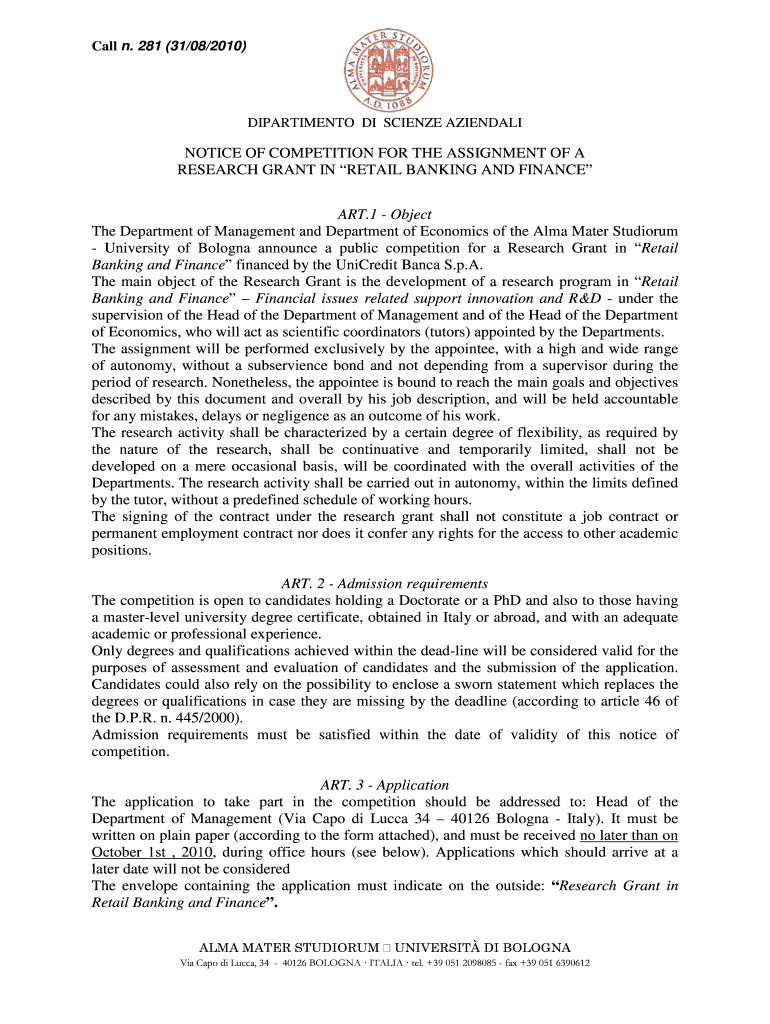 Get the free notice of competition for the assignment of a - Dipartimento di ... - dse unibo