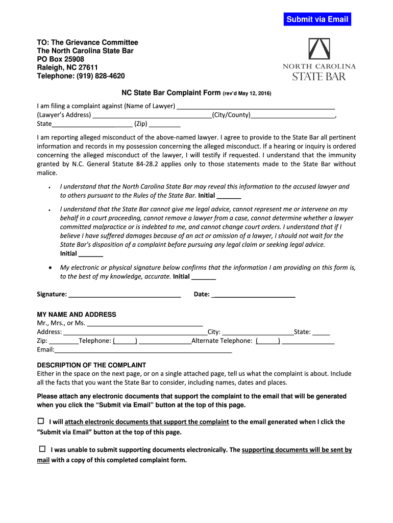 Get the free the Grievance Form - North Carolina State Bar - ncbar