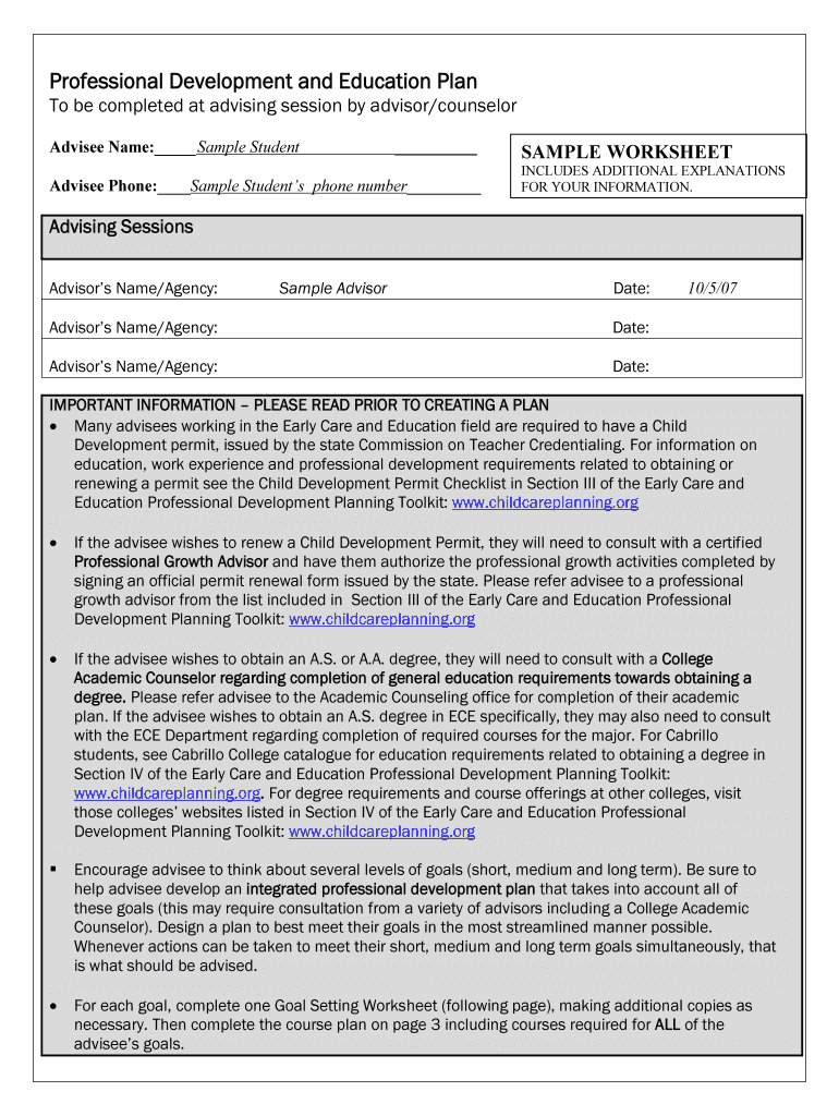 This professional development plan is essential for a diverse audience involved in early childhood education. It caters to students pursuing state permits or degrees, as well as advisors who guide them through the process of form completion.