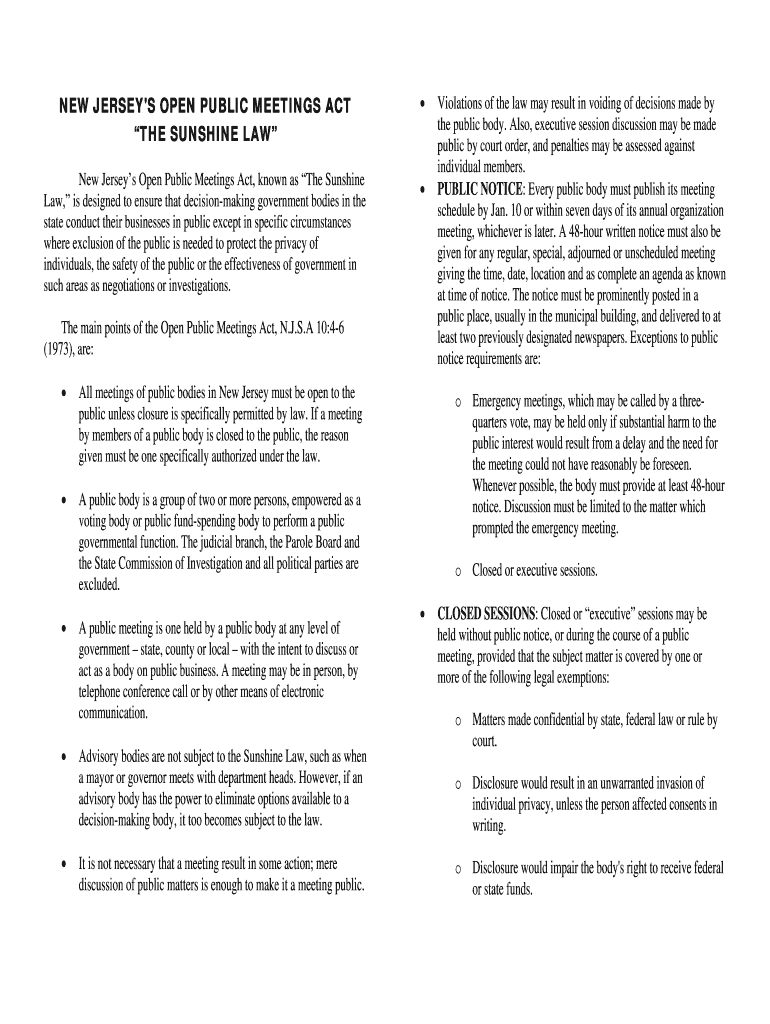 Get the free NEW JERSEY'S SUNSHINE LAW - intraweb stockton