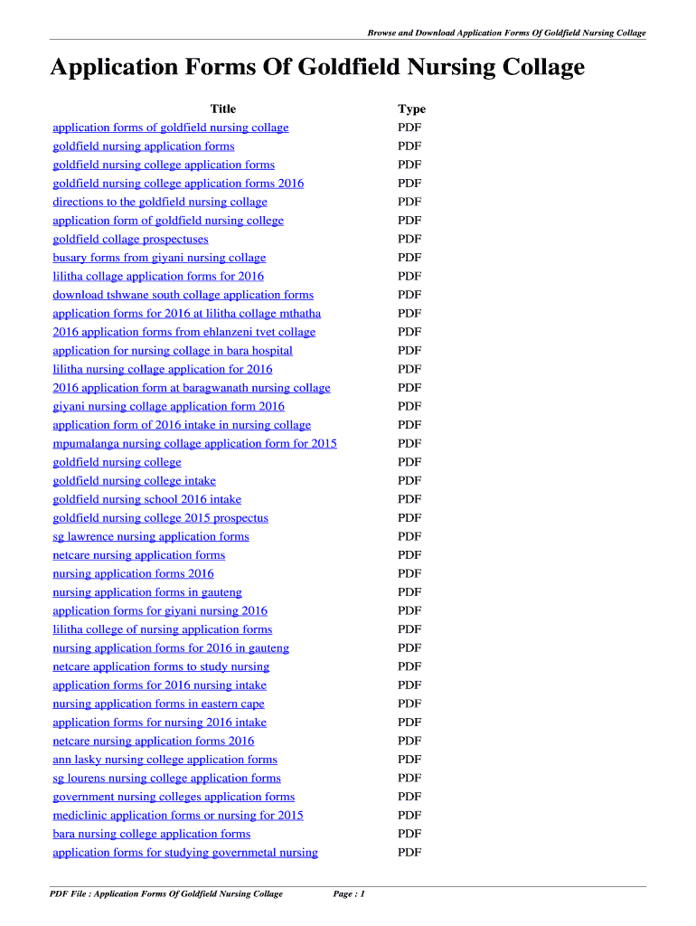 Application form of 2016 intake in nursing collage PDF mpumalanga nursing collage application form for 2015 PDF goldfield nursing college PDF