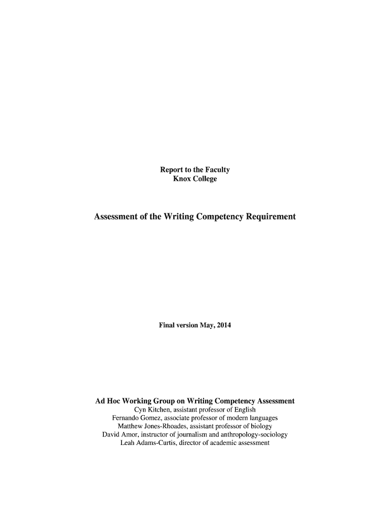 Get the free Writing Competency Report - Knox College