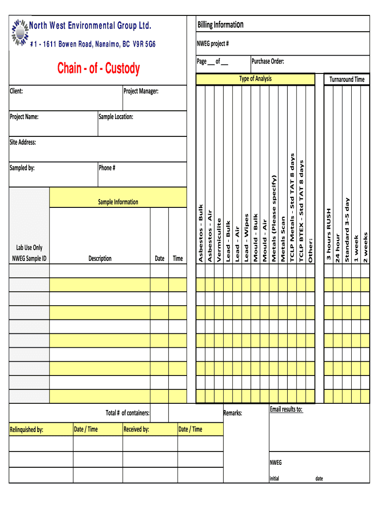 Get the free North West chainofcustody - Nanaimo Office V1.0C.xlsx - nwest bc