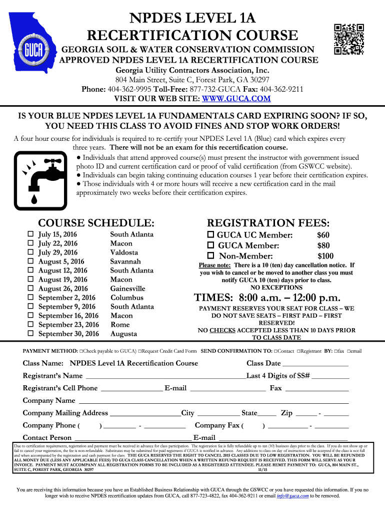 Get the free npdes level 1a recertification course - Georgia Utility Contractors ...