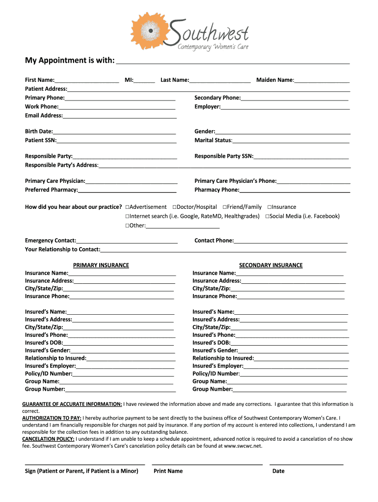 Get the free First Name - Southwest Contemporary Women's Care - swcwc
