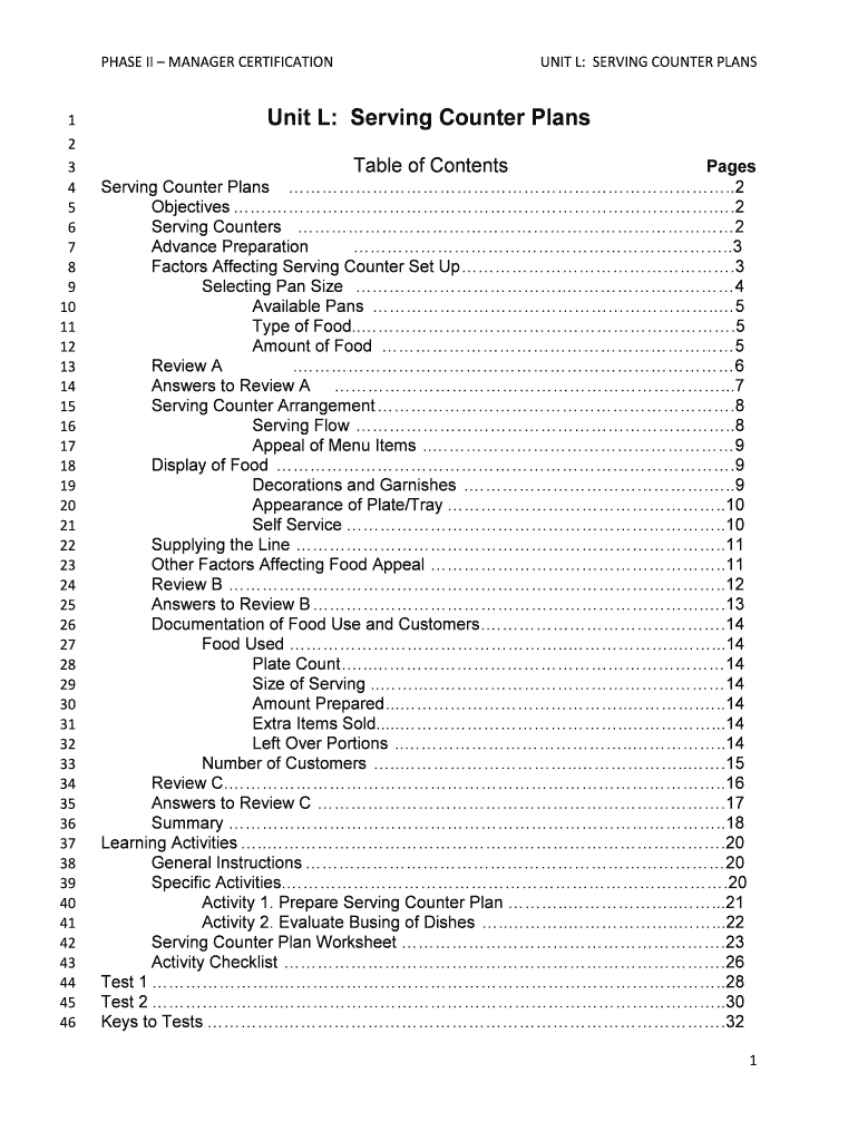 PHASE II MANAGER CERTIFICATION 1 2 3 4 5 6 7 8 9 10 11 12 13 14 15 16 17 18 19 20 21 22 23 24 25 26 27 28 29 30 31 32 33 34 35 36 37 38 39 40 41 42 43 44 45 46 UNIT L: SERVING COUNTER PLANS Unit L:
