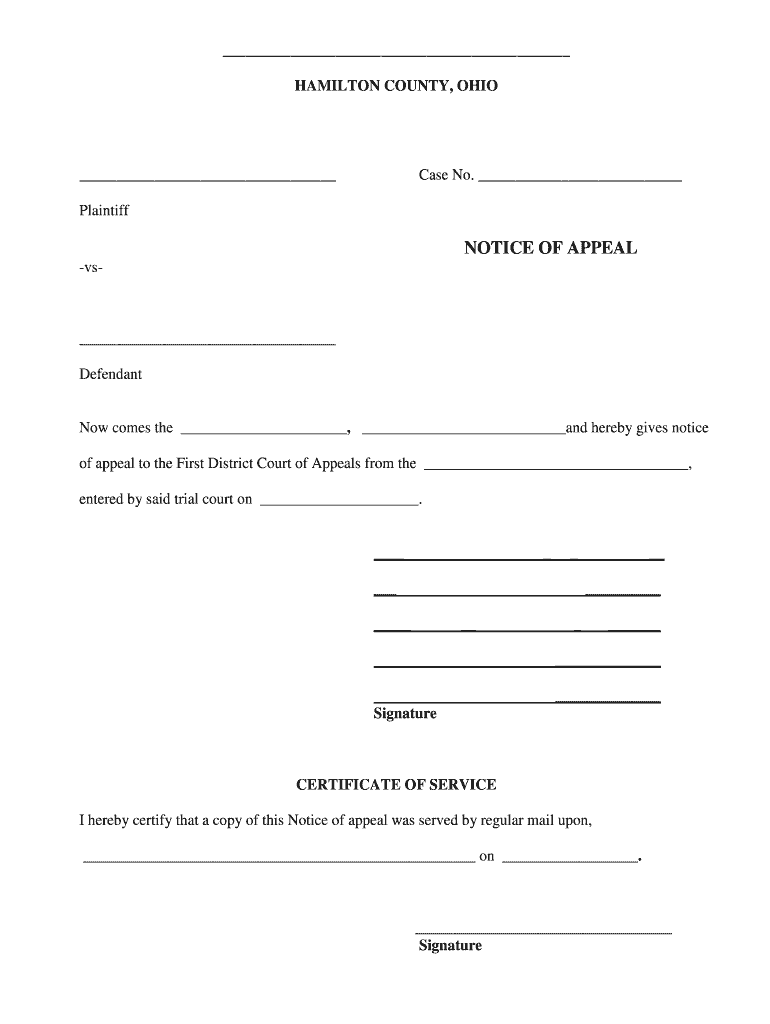 Get the free Notice of Appeal - Hamilton County, Ohio - hamiltoncountyohio