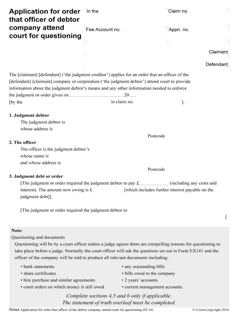 Get the free N316A - Application for order that officer of debtor company attend court for questi...