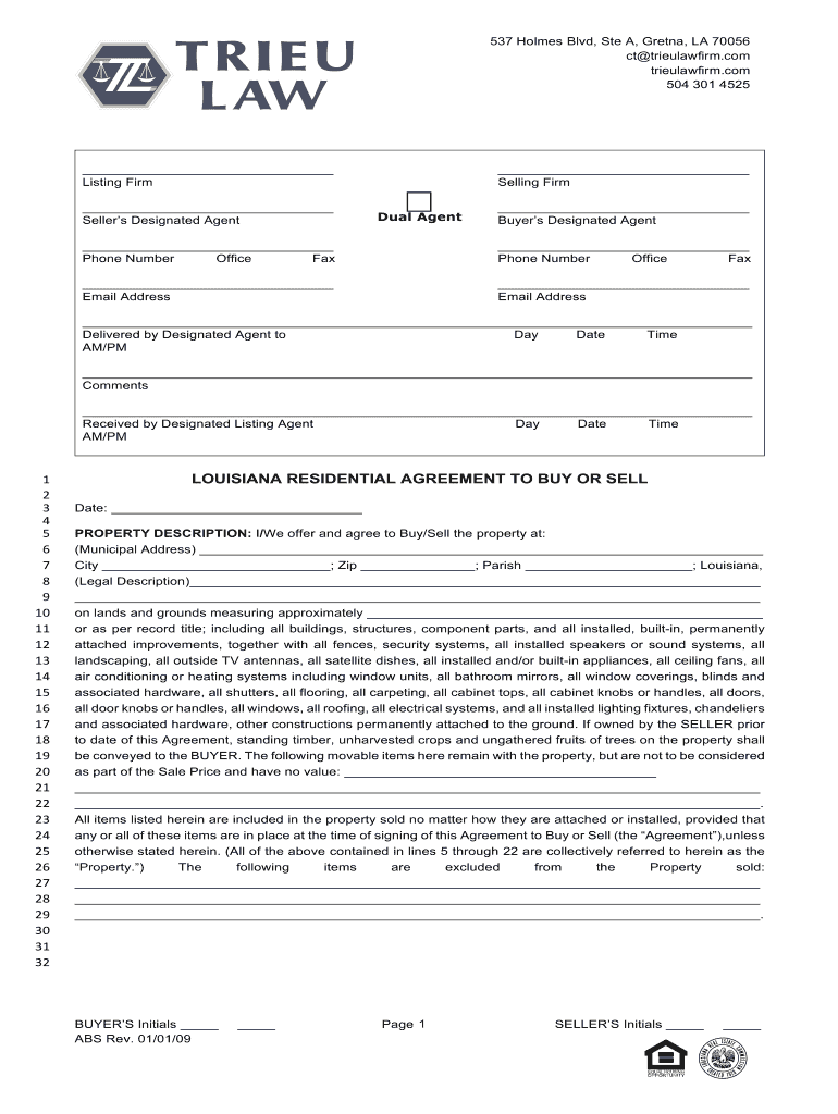 Get the free LOUISIANA RESIDENTIAL AGREEMENT TO BUY ... - trieulawfirm.com