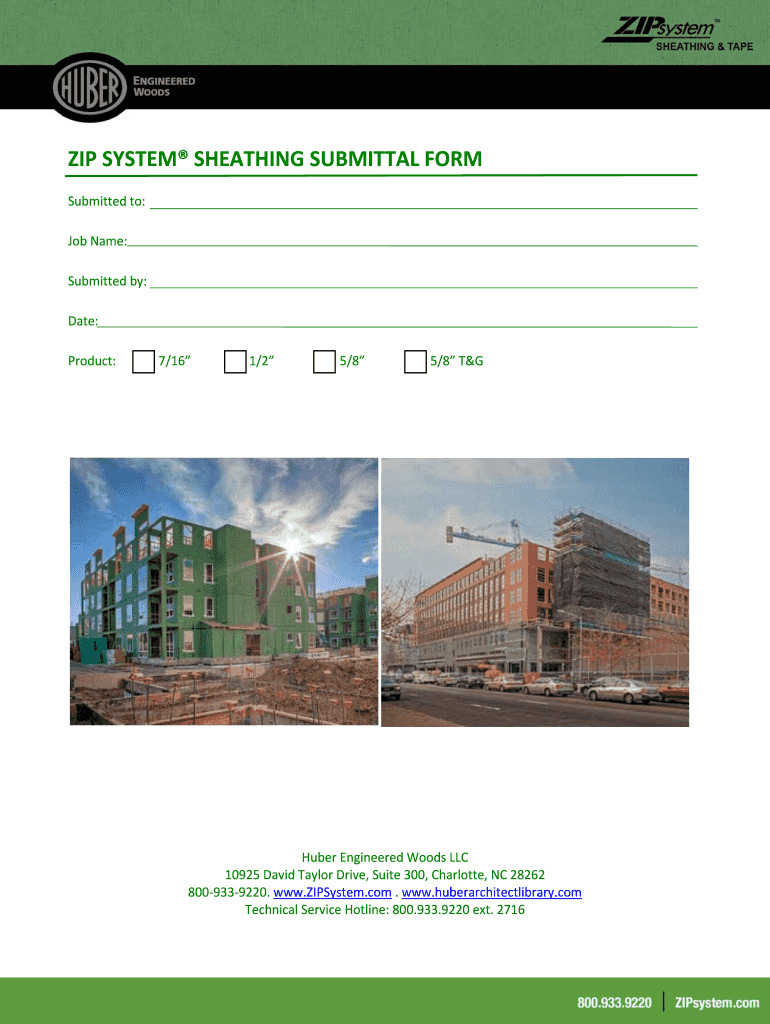 Get the free ZIP System Sheathing Submittal Form