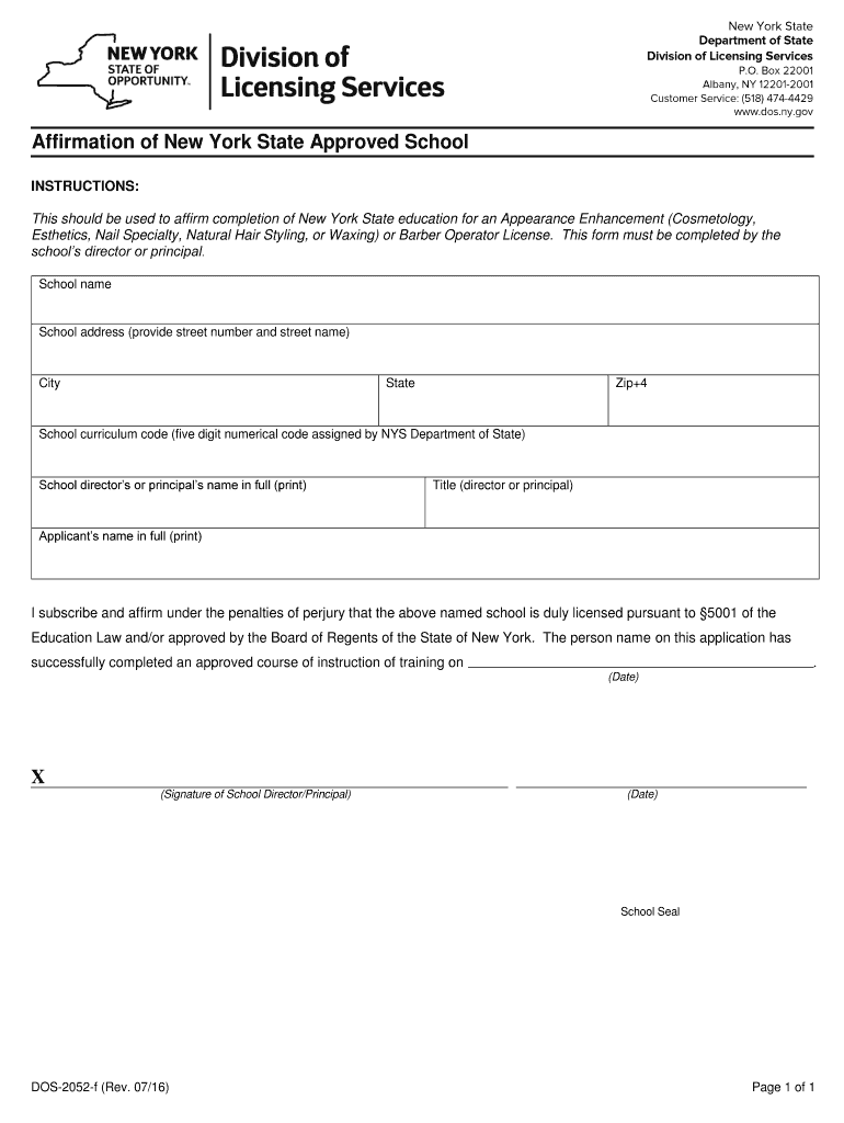 Get the free Affirmation of New York State Approved School X - dos ny