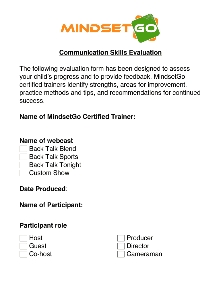 Communication Skills Evaluation The following evaluation form has been designed to assess your children progress and to provide feedback. Mindset certified trainers identify strengths, areas for improvement,