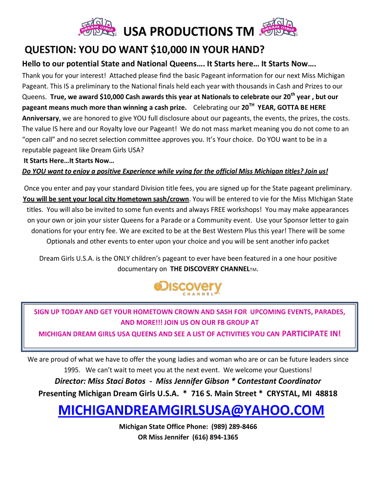 Hello to our potential State and National Queens. It Starts here It Starts Now.